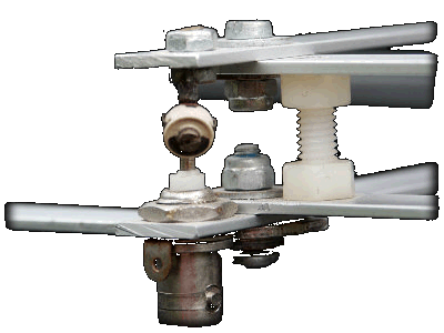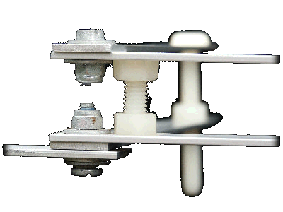 Nun die Bauteile entsprechend der Zeichnung mit den Schrauben und Muttern zusammenschrauben. Für die beweglichen Stellen die Stoppmuttern verwenden. Die Schrauben nur soweit anziehen, dass das Gelenk gerade noch beweglich ist.